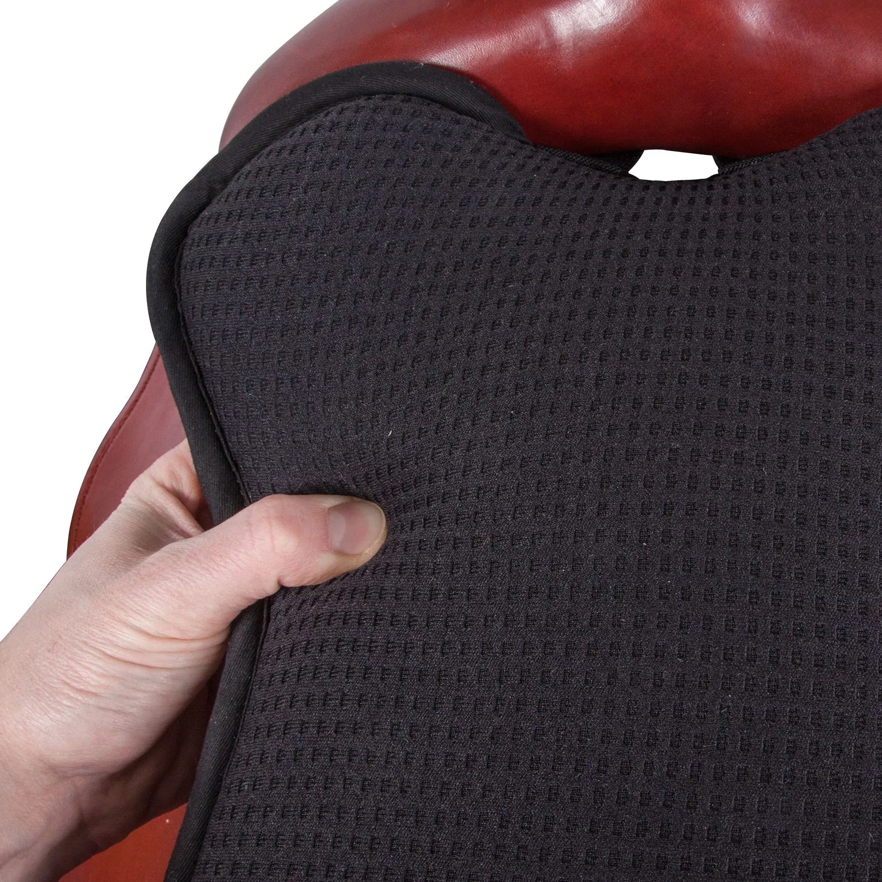 The Airflow Western Seat Cushion is the perfect solution for back pain and improved comfort on long trail days in your Western saddle. The unique Airflow material allows for continual air circulation and isn’t bulky: the perfect combination of cool and comfort. The reinforced elastic straps securely hold the cushion in place, so you don’t have to worry about slipping as you ride. For ultimate comfort, whether you are on the trail for days, endurance, or hacking, the Airflow Western Seat Cushion has you covered!