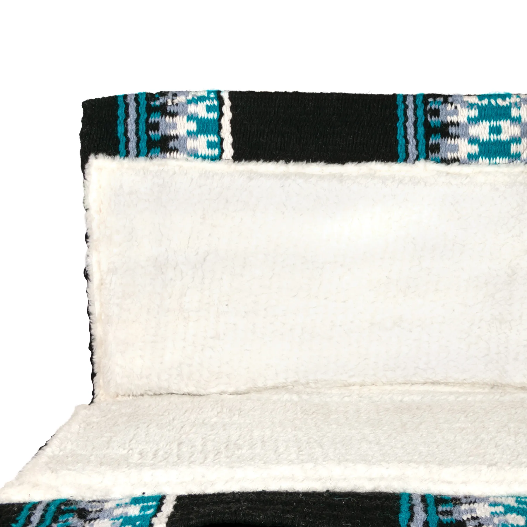 The Billy Royal® Performance Wool Top Contour Pad is designed to provide a comfortable, stylish, and functional riding experience. Designed for both everyday use and show days, this saddle pad offers unmatched comfort to your horse. The 1″ thick wool saddle pad features a Navajo-designed top in vibrant colors to complement your favorite show outfit. The synthetic fur fleece lining adds a layer of softness, enhancing your horse’s comfort during rides. The contoured shape of the pad easily molds to your horse’s withers and back, ensuring a snug fit.