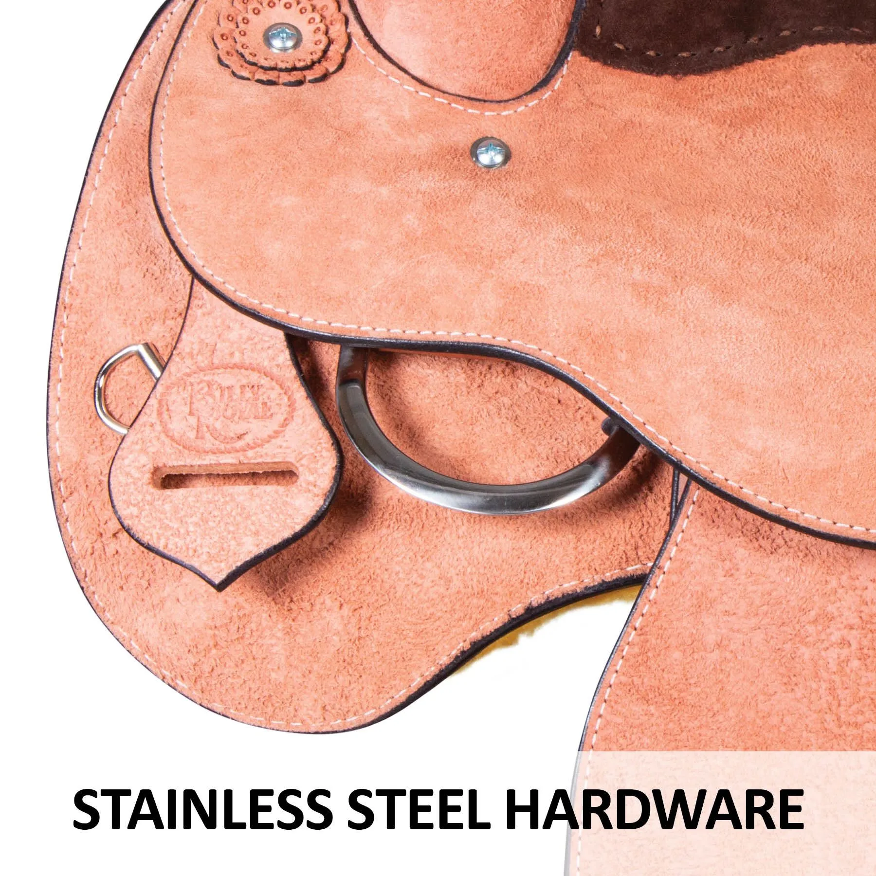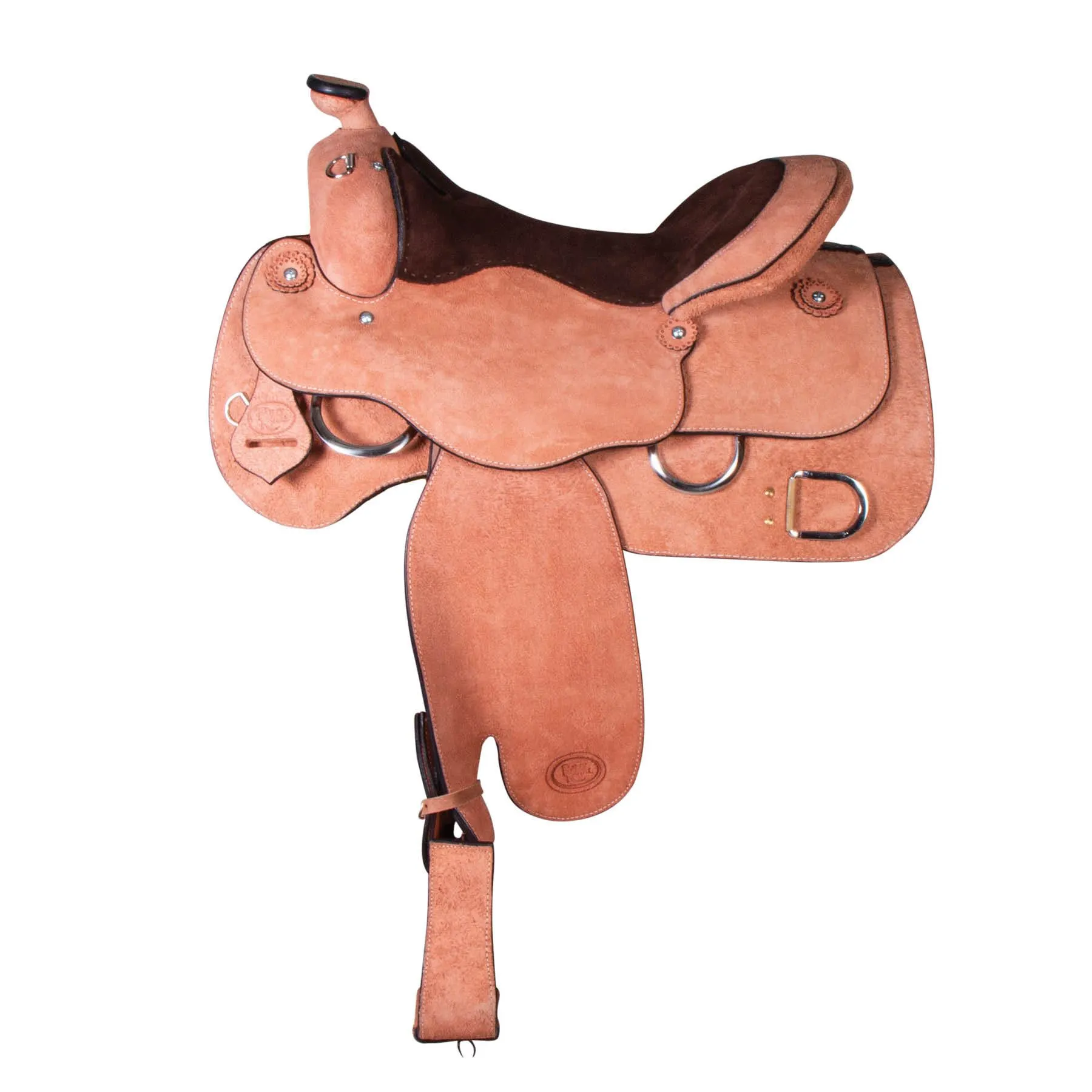 The Pro Work Saddle II is a Western saddle crafted with both the rider’s and horse’s comfort in mind. This exceptional saddle is made from superior roughout leather that is durable and supple, ensuring a quick break-in period. Built on a custom-made rawhide-covered wooden tree, it’s designed to perfectly fit modern Arabian and Quarter Horse conformations. The saddle features a plush sheepskin-lined skirt and comes with a lifetime warranty.
