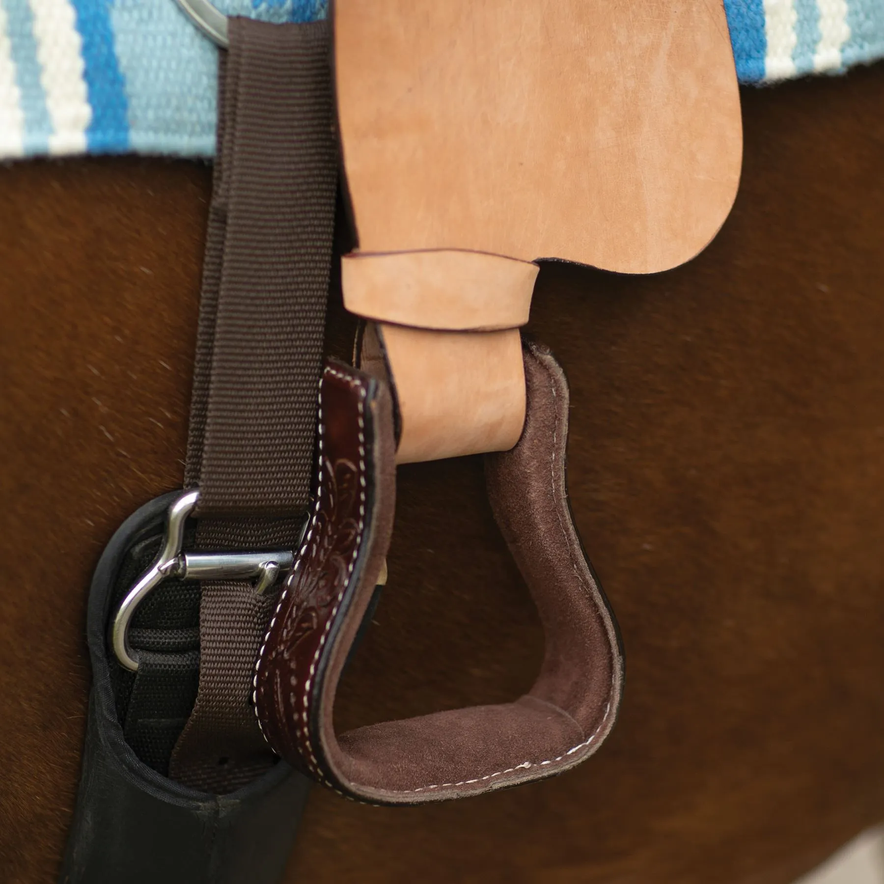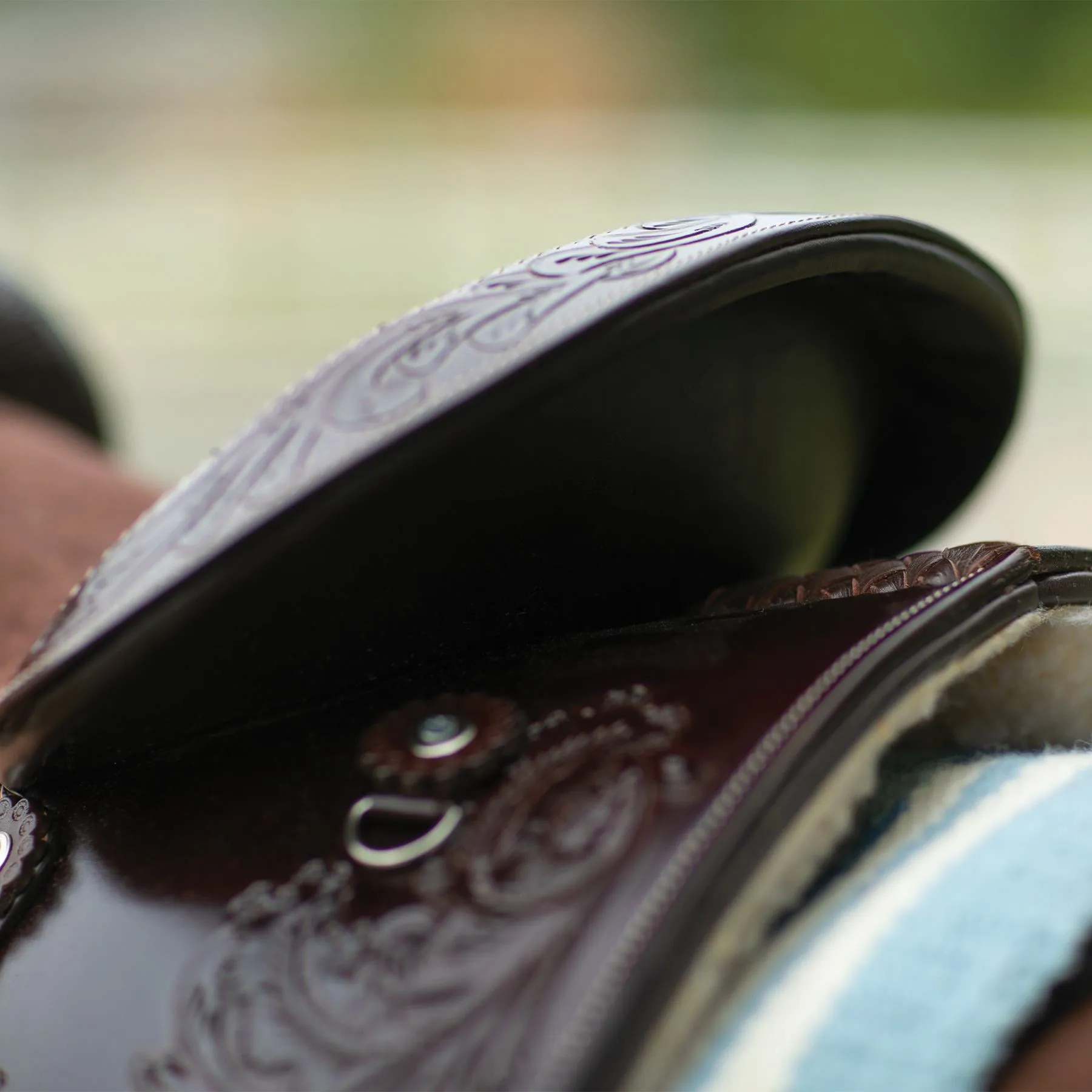 - Beautifully floral tooled leather skirt, pommel, cantle, and stirrups