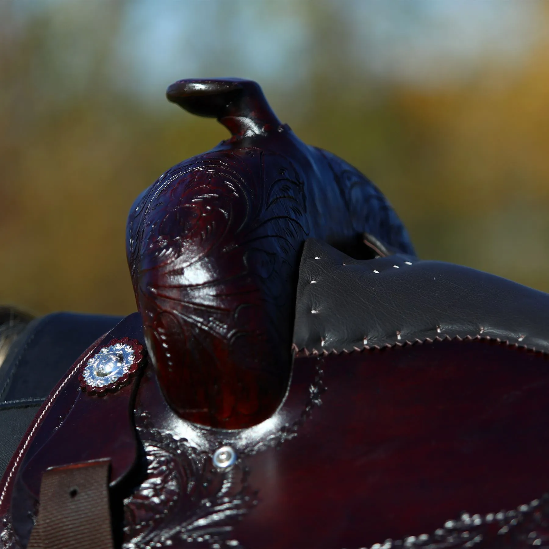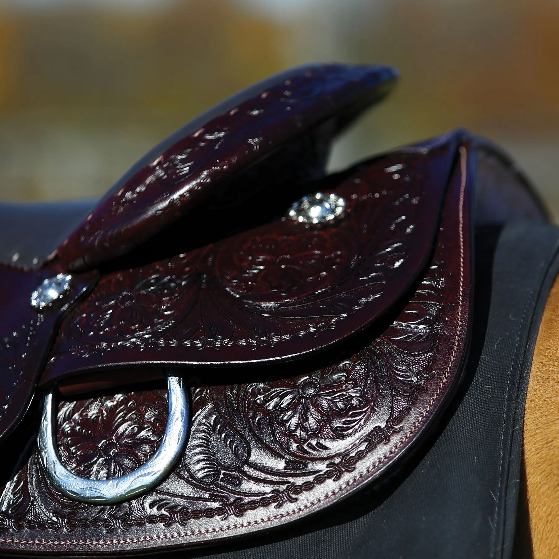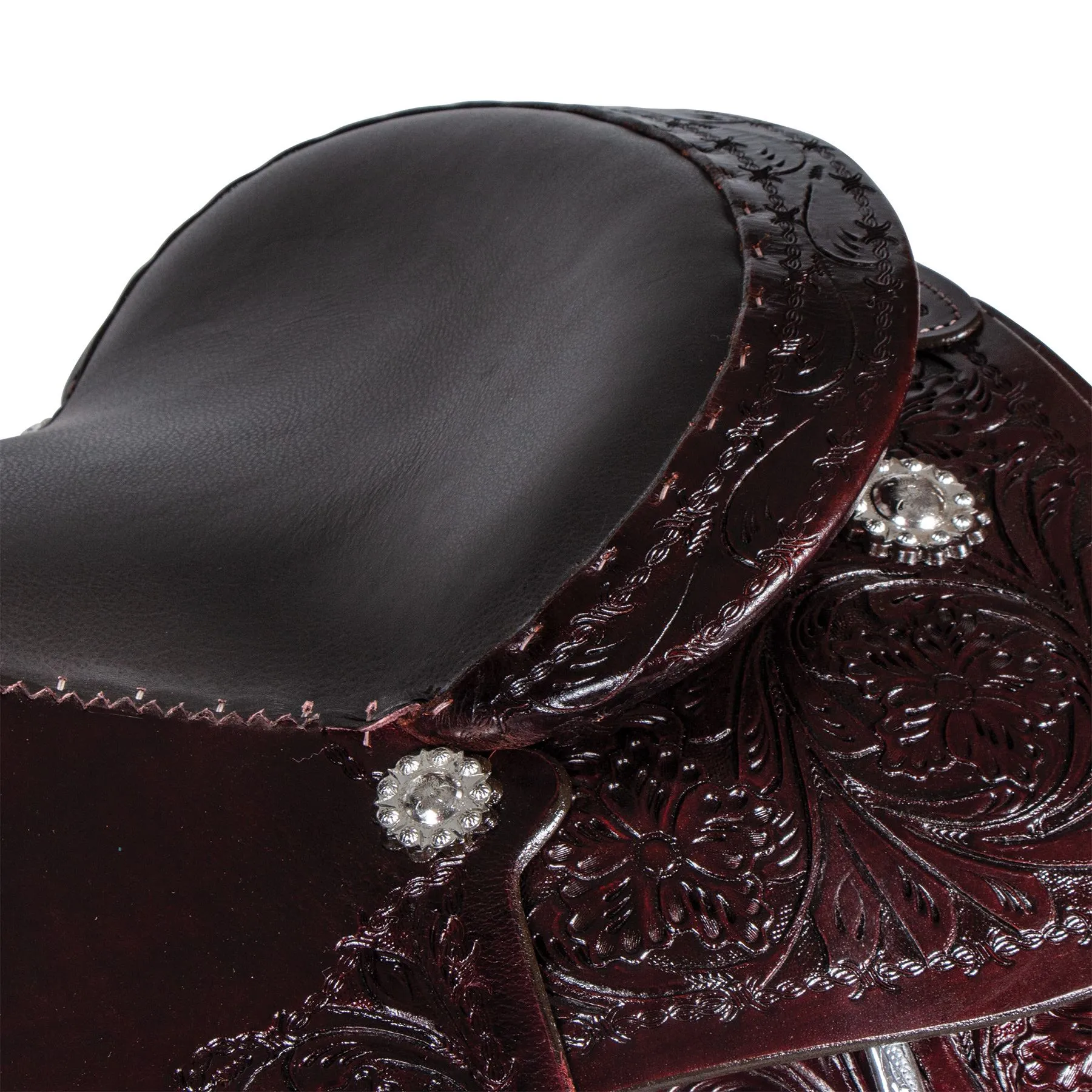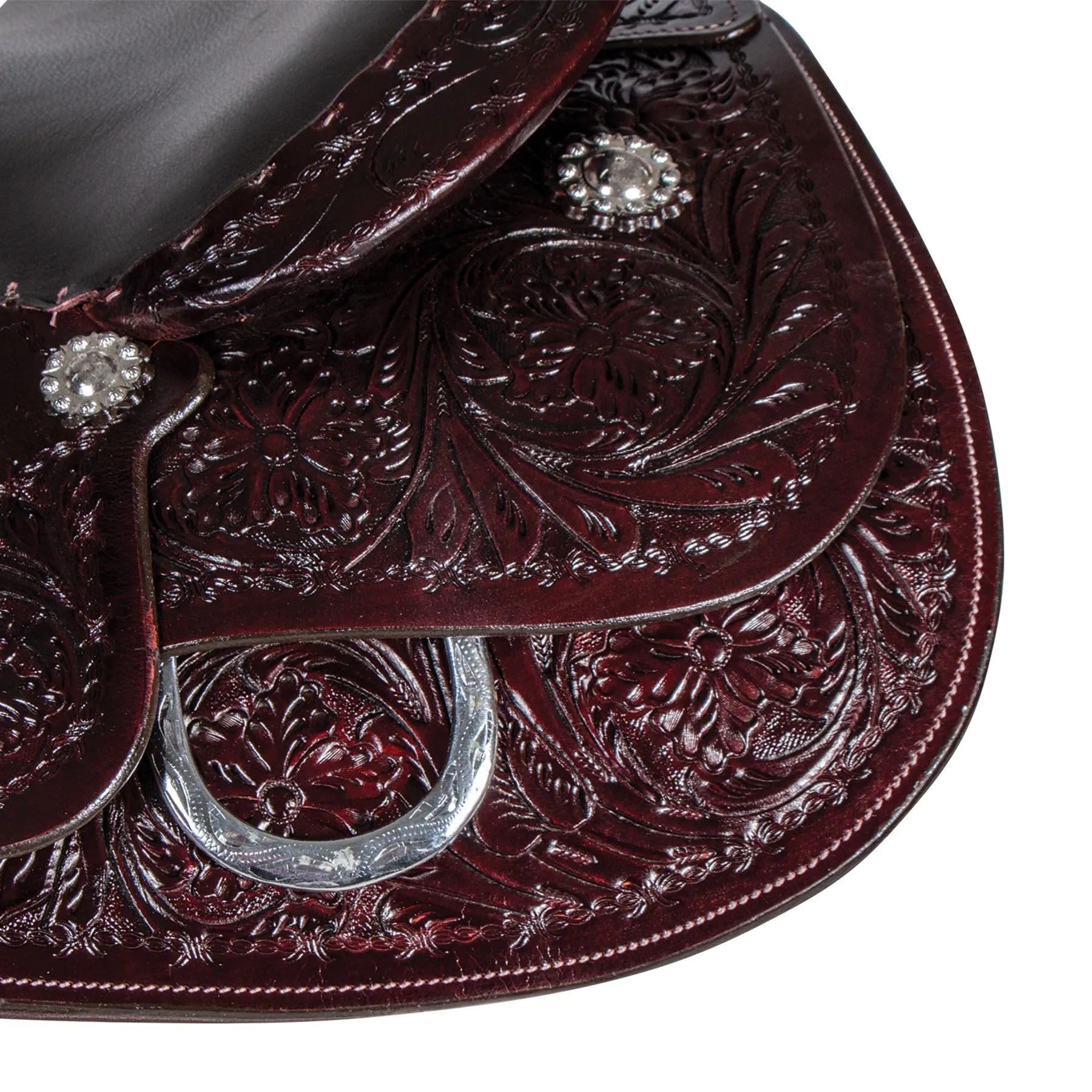 - Engraved silver-plated conchos for a touch of elegance