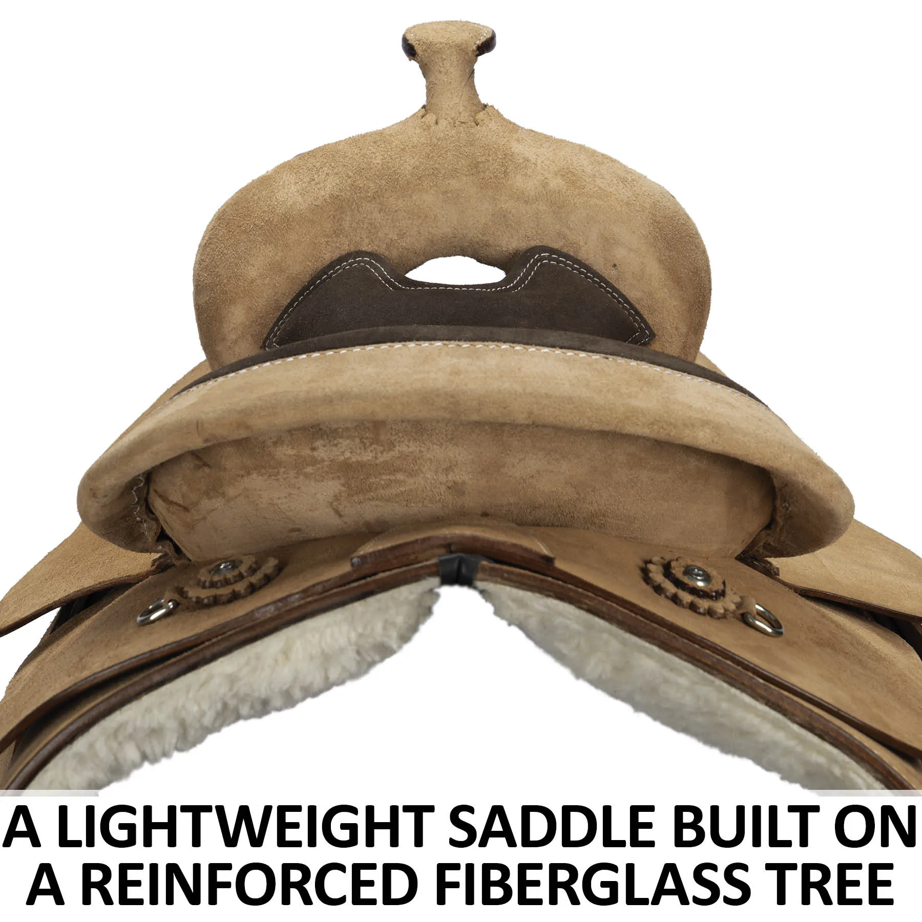 Quality and affordability make the lightweight Double S Work and Trail Western Saddle a top choice for those who spend hours each day in the saddle. Not only does the roughout design and padded seat help riders stay in place and comfortable all day, but the close contact feel, and semi-quarter horse bars help this saddle fit today’s horses. Weighing only 23 lbs, this saddle is extremely lightweight due to the fiberglass tree, making it perfect for trail riding and work. Includes heavy-duty hardware, a Latigo strap, and an off-billet.