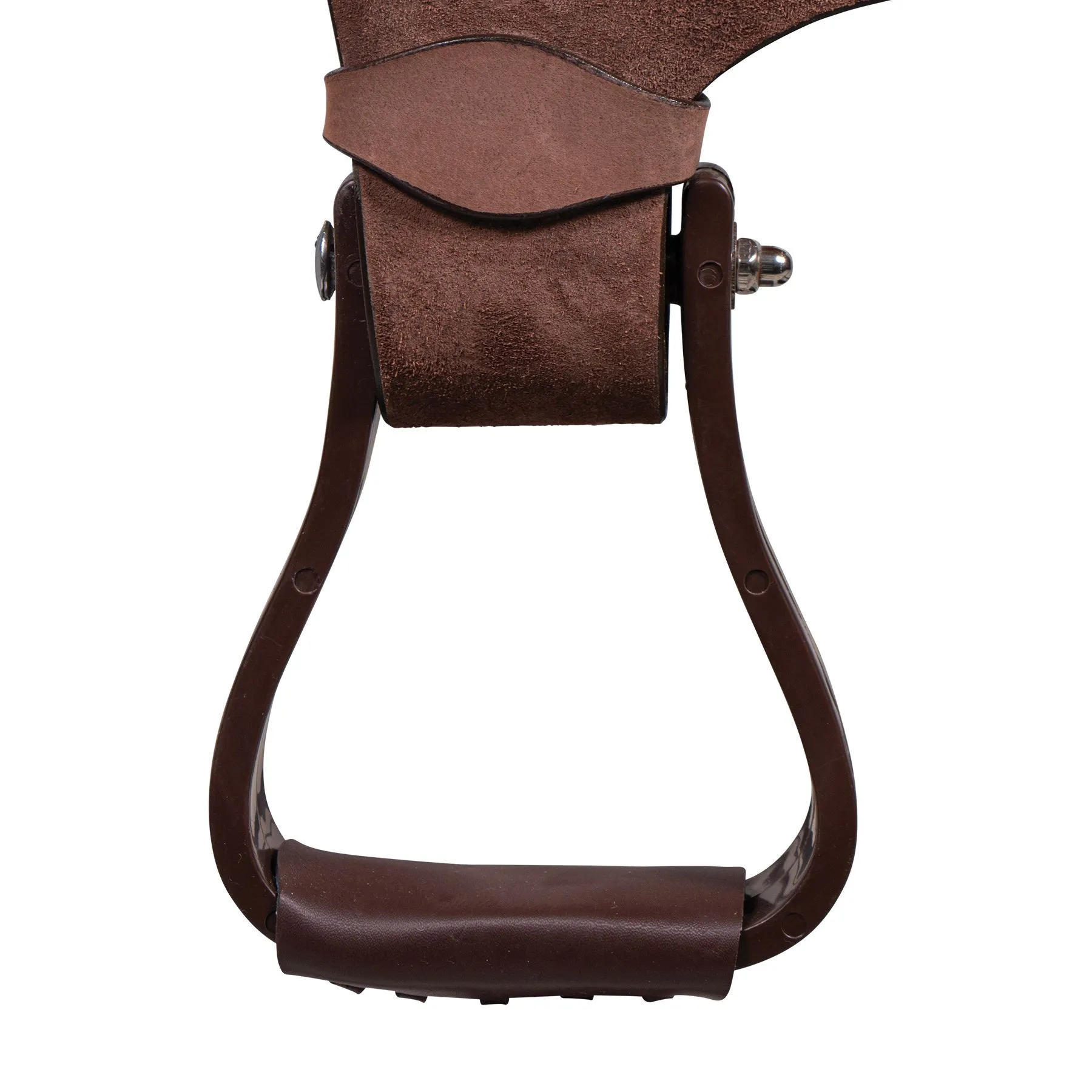 Roughout suede fender and seat for grip on the trail. Synthetic skirt and pommel make this easy to wipe down and clean. Built on a fiberglass tree, with Semi-Quarter Horse bars to fit today’s modern horse. Skirt length is 25″, skirt width is 14″, and gullet width is 6 1/2″. Polymer stirrups are lightweight and durable.