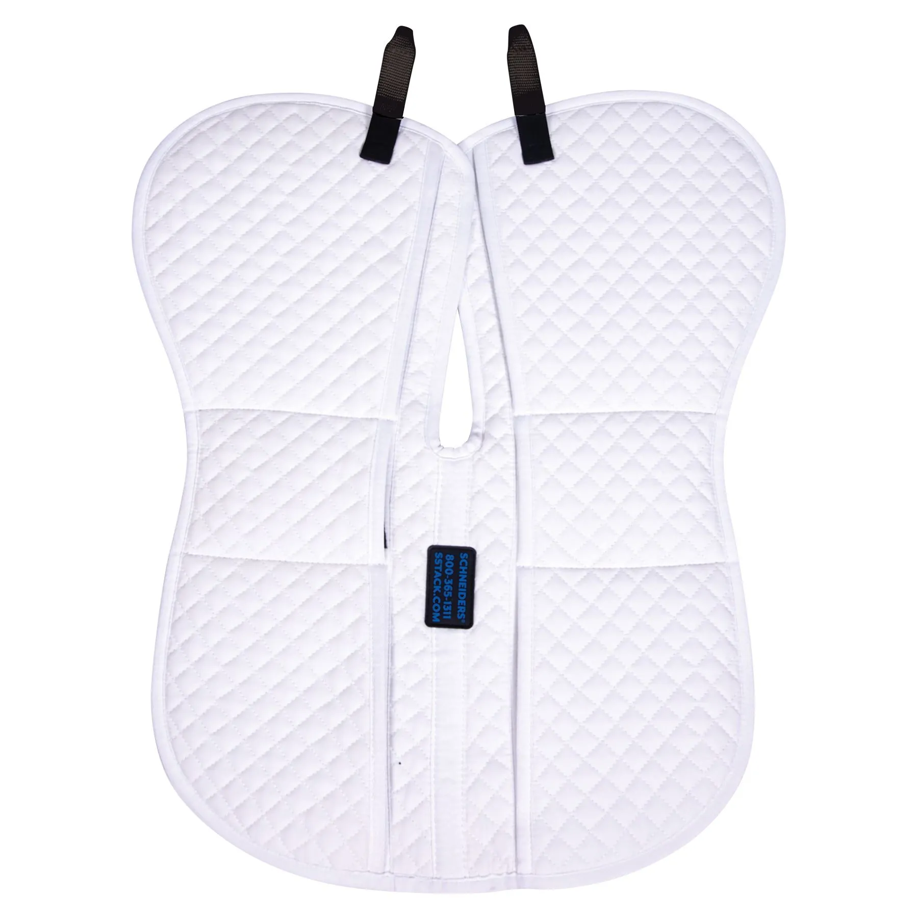 - Pad attaches to saddle D’s with small front hook and loop closure tabs
