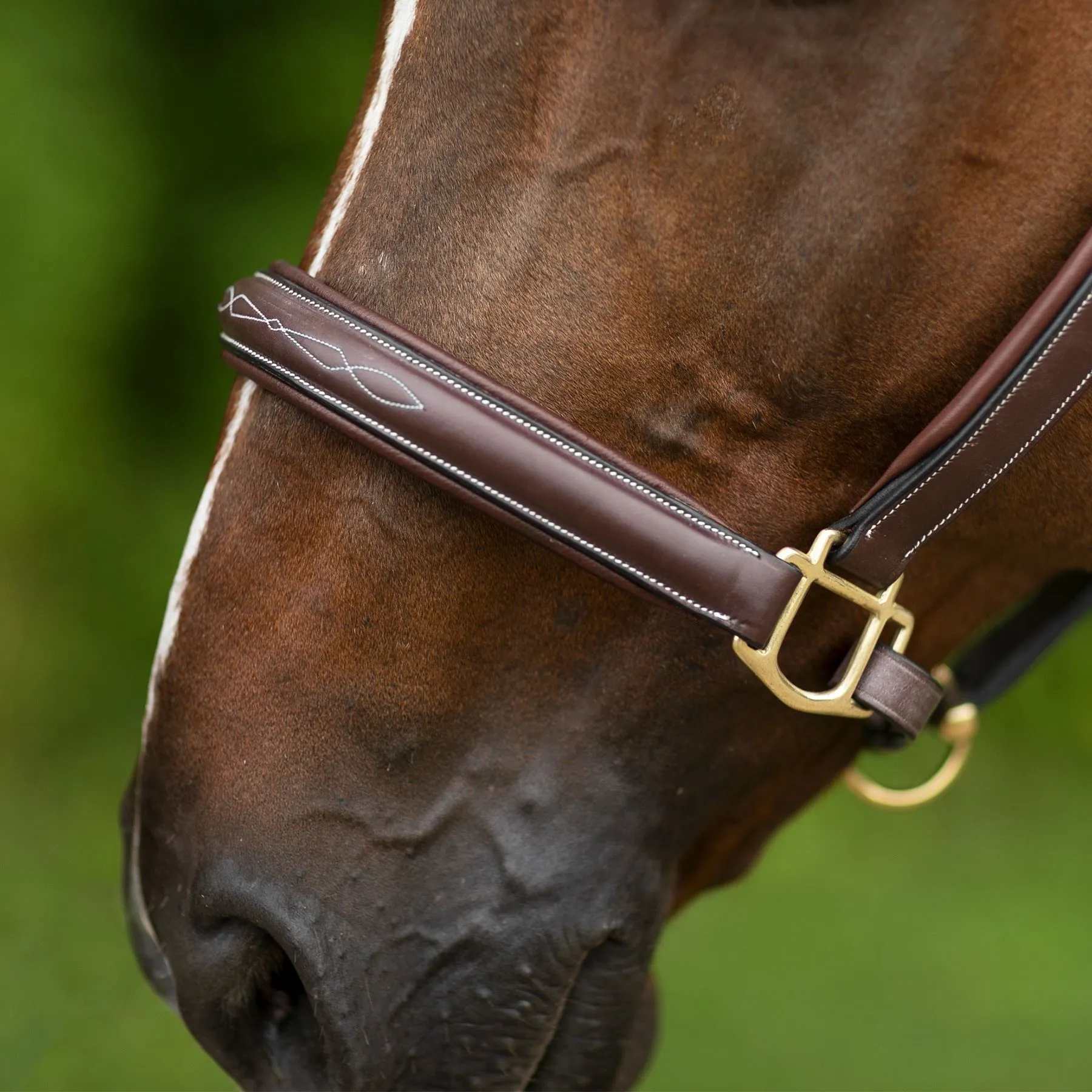 - Rich, radiant chocolate in color, fancy stitch design on nose with white stitching to perfectly accent this fancy stable halter