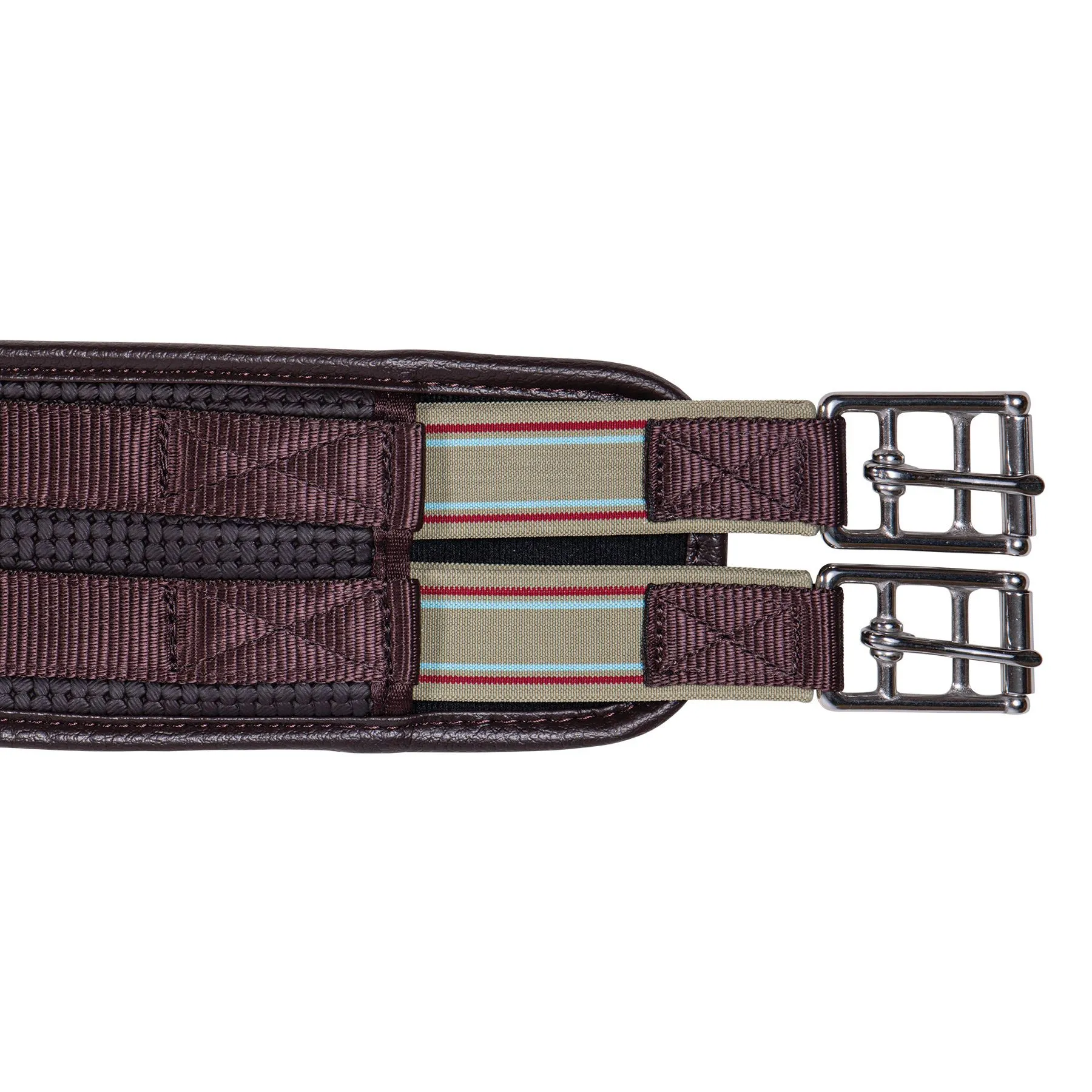 - Double elastic on one side allows easy full adjustment and reduces pressure as your horse moves.